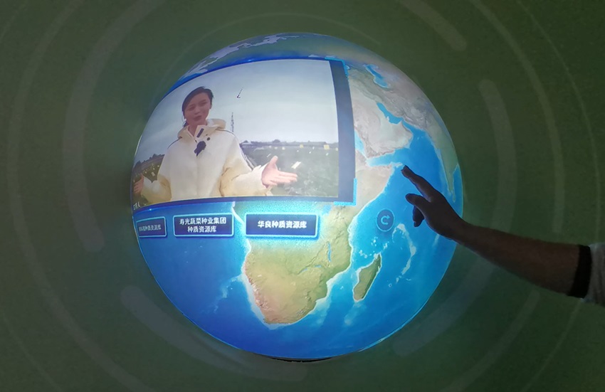 此展項為山東種子谷主題農(nóng)業(yè)展廳內(nèi)的多媒體互動展項-內(nèi)投半球球幕投影觸摸互動內(nèi)容演繹,