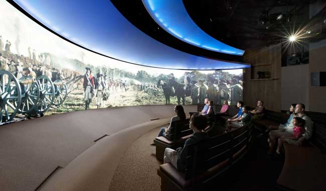 環(huán)幕影院是利用360度全景環(huán)幕打造震撼的視覺體驗(yàn),再配合現(xiàn)場(chǎng)的燈光以及音響的渲染出沉浸式的觀影體驗(yàn)。人們只需要站在圓形觀眾廳的中央?yún)^(qū)域,被四周環(huán)繞的廣闊畫面所包圍,再加上與影片內(nèi)容相一致的全方位立體聲效果的配合,能產(chǎn)生極強(qiáng)的身臨其境感。